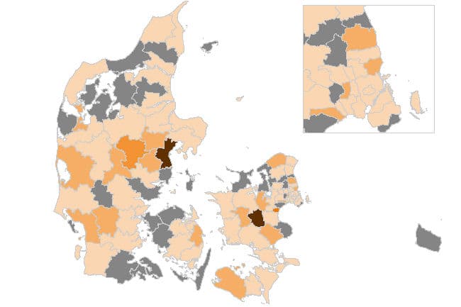I alt har 36 kommuner nye smittede fra torsdag til fredag, altså mere end hver tredje.