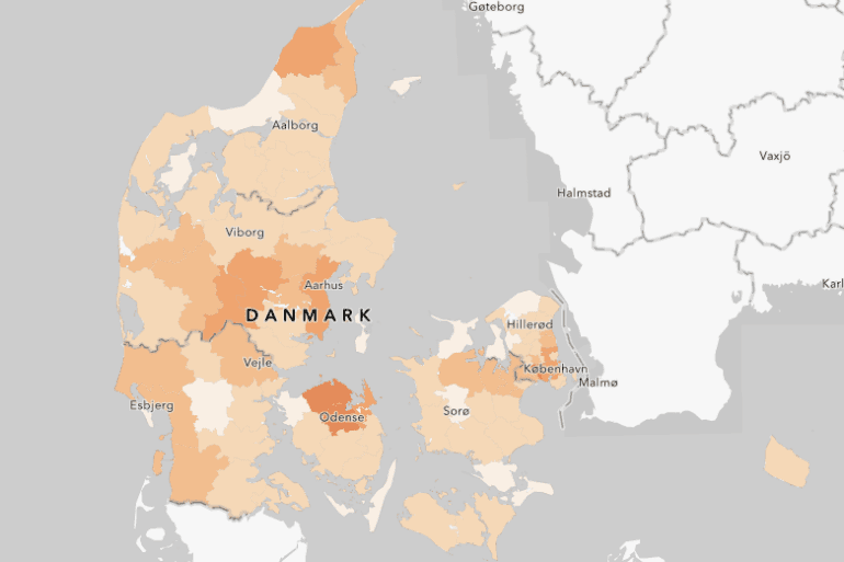 Ser man på antallet af smittede pr. 100.000 indbyggere, er ikke færre end 16 kommuner nu over de 20, som regnes for kritisk. Det er - med det faktiske antal i parentes: