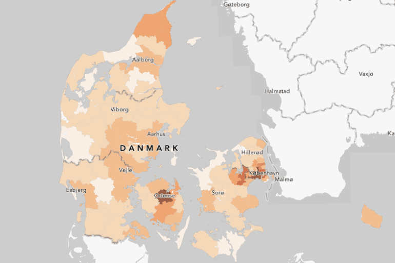 Lige nu ligger 21 kommuner over 20 nye smittede pr. 100.000 indbyggere den seneste uge, hvilket er myndighedernes definition på, hvornår der er grund til bekymring. Det er - med faktisk antal i parentes: