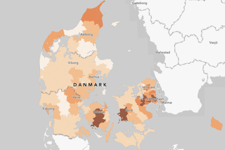 36 kommuner er i dag over de 20 smittede pr. 100.000 indbyggere på en uge, som ifølge myndighederne giver anledning til bekymring. De fleste ligger i hovedstadsområdet.