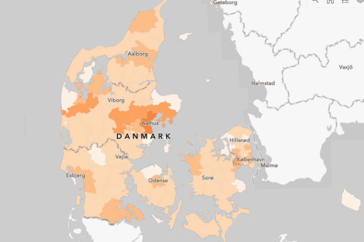 Ud af de 83 er 20 fra København, mens Aarhus har 11, Esbjerg har fem, Silkeborg fire, mens Greve, Sønderborg, Aalborg og Hjørring har tre. Resten har færre eller ingen.