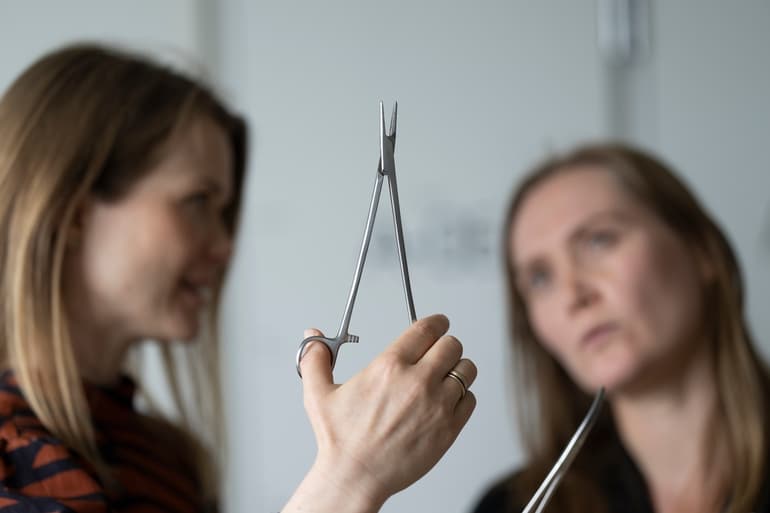 Og det er ikke små mængder der er tale om. Hvert år bruges 40.429 éngangs-sutursæt af metal på alene på hospitalerne i Region Midtjylland. Det svarer til at kassere 3,2 ton metal – og det er alene fra dette ene instrumentsæt med en saks, en nåleholder og en pincet.