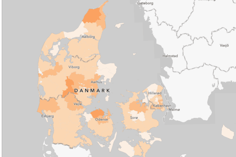 Tager man hensyn til kommunestørrelser og sammenligner antallet af nye smittede pr. 100.000 indbyggere den seneste uge, ligger nu fire over de kritiske 20 (se reelt antal smittede i parentes):