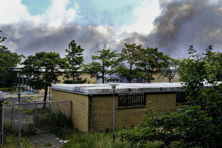 Branden på den lukkede skole brød ud søndag. Mandag opfordrede politiet beboere i området nær skolen til at søge indenfor og slukke ventilation samt lukke døre og vinduer.