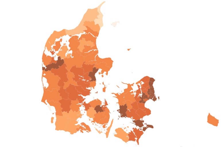 Der er dog stadig et stykke ned til bekymringsgrænsen på 20 smittede pr. 100.000 personer. Der er fortsat kun seks kommuner under denne grænse: Læsø, Frederikshavn, Hjørring, Jammerbugt, Fanø og Ærø.