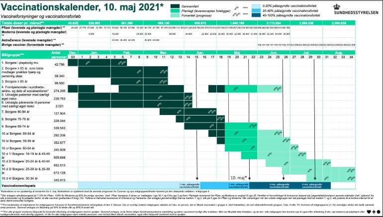 De opdaterede prognoser betyder, at aldersgrupperne 16-39 år modtager første stik en uge senere, end det fremgik af den senest opdaterede kalender, de 30-34-årige dog to uger senere.
