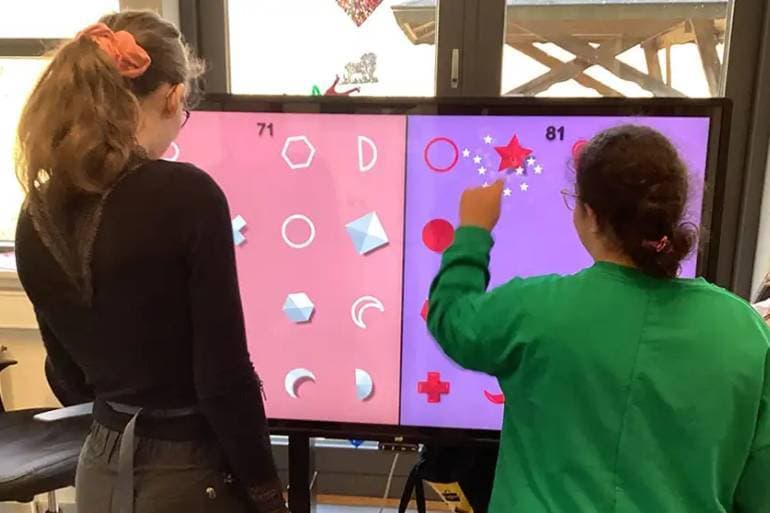 Skærmen indeholder en række apps, som på en sjov måde træner både fysiske, kognitive og sociale færdigheder.