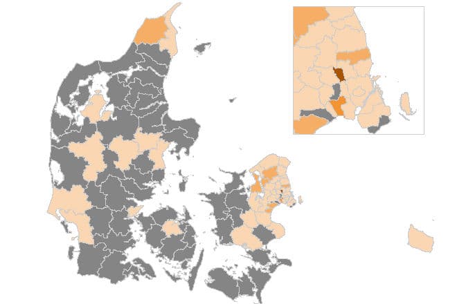 Torsdag havde kun fire kommuner mere end ti smittede pr. 100.000 indbyggere, men fredag er syv kommuner røget over den kategori.
