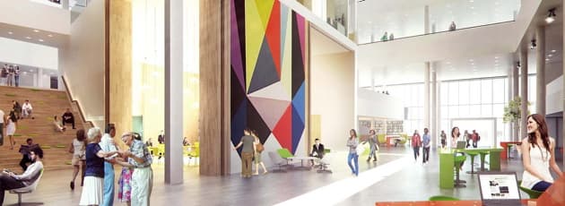 Lige nu knokler entreprenøren Züblin A/S med at belægge atriumtrappen fra Borgertorvet med asketræ, plante det sidste i taghaven oven på Sundhedscenteret og anlægge pladsen foran rådhuset.