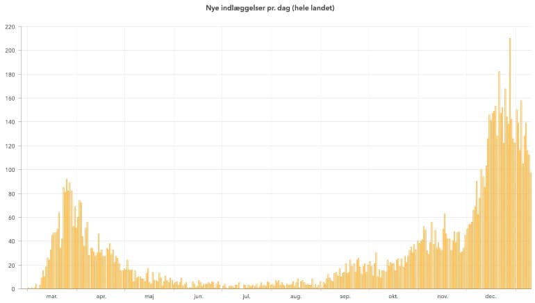 Antallet af indlagte med corona tager med mandagens tal et hop opad med 45 flere end i går, så der nu er 920 indlagte. Det øgede antal skyldes hovedsagelig et fald i antallet af udskrivelser, idet antallet af nyindlæggelser er faldende.
