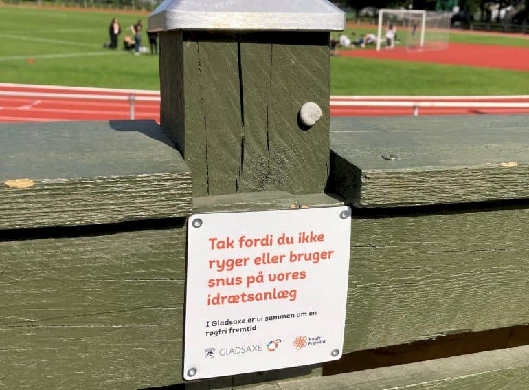 GLADSAXE: Fra i dag er alle udendørs idrætsanlæg i Gladsaxe røgfri. Der er blandt andet opsat skilte ved anlæggene med den venlige henstilling ”Tak fordi du ikke ryger eller bruger snus på vores idrætsanlæg”, oplyser kommunen.