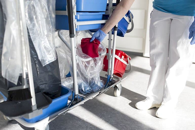 Her har kommunen prioriteret, at de bliver fordelt, så der er én på hver institution, hvor deres primære opgave er at vaske legetøjet og afspritte institutionerne.