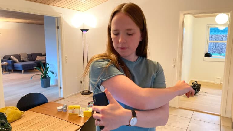 AARHUS: Det er nemt, hurtigt og effektivt. På Signe Nordahls overarm sidder en sensor, og når hun holder en scanner op foran sensoren, viser den hendes aktuelle blodsukker.