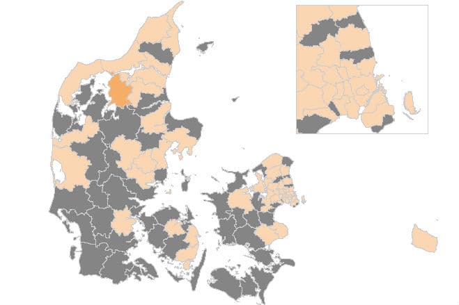 Ændringen gør det umuligt at konstatere, hvor døgnets 21 nye smittede bor. Men det opdaterede danmarkskort over smittede pr. 100.000 indbyggere den seneste uge tyder på, at der p.t. ikke er større smitteudbrud i gang. Vesthimmerland, som har været hårdt ramt, er eneste kommune med over ni smittede pr. 100.000 indbygger, og også her er tallet faldet.