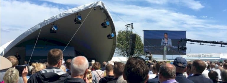 Dermed går hun bort fra en mere klassisk politisk tale og vælger at sætte fokus på et mere folkeligt emne fra hovedscenen ved Folkemødet på Bornholm.