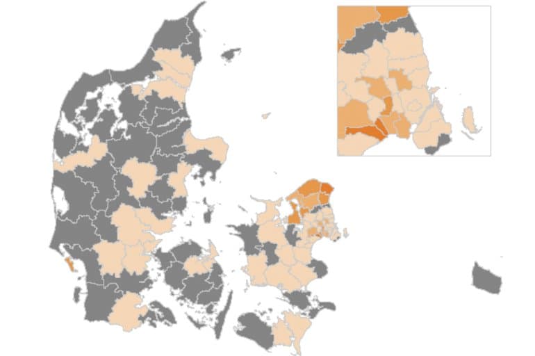 Kommuner som København, Frederiksberg, Rødovre, Herlev, Albertslund, Gentofte, Lyngby-Taarbæk og Tårnby har haft under ti positive test pr. 100.000 indbyggere siden sidste torsdag. Og Hørsholm, Allerød og Dragør har slet ikke haft nogen.