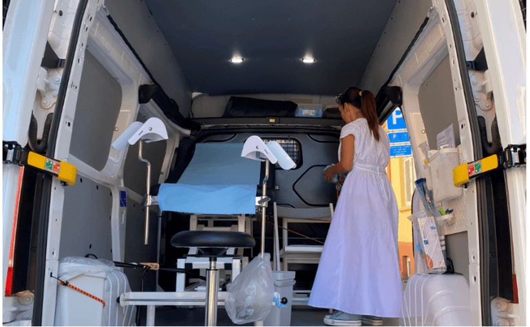 SYDDANMARK: Reden Odense har de seneste tre år kørt ud med en såkaldt "kvindelance" – en mobil sundhedsklinik på hjul bemandet med frivillige læger, sygeplejersker og jordemødre.