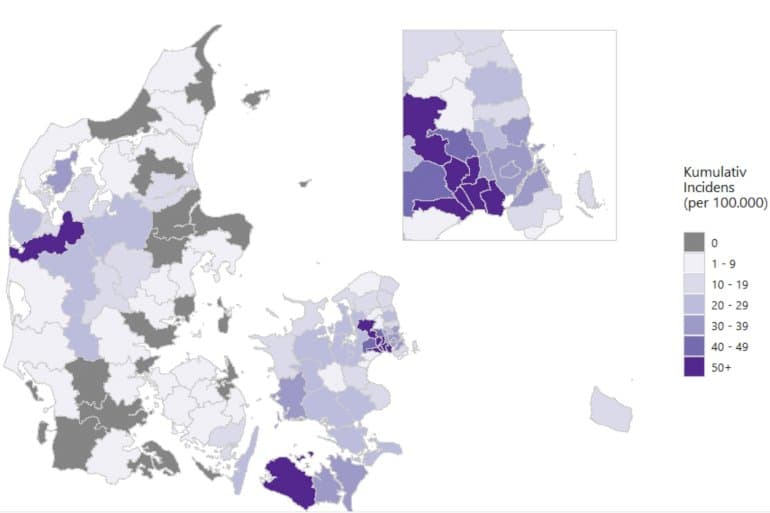 Onsdagens rapport fra instituttet bringer godt nyt til Randers, Favrskov, Fredericia, Tønder og Kerteminde, som nu er med på kortet som kommuner, der ikke har haft nye covid-19-tilfælde den seneste uge. Til gengæld har Allerød haft mindst et nyt tilfælde og er røget af listen over heldige, som nu består af disse 18 kommuner: