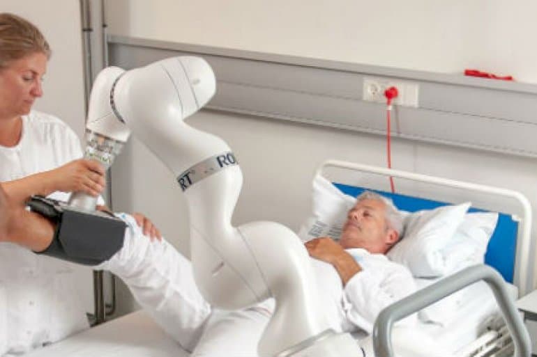 På Odense Universitetshospital og snart på Aalborg Sygehus, Hobro Rehabiliteringscenter og i Aarhus Kommune testes verdens første genoptræningsrobot til sengeliggende patienter. Tanken er, at den fremover skal bidrage til at reducere patienters komplikationer og lette sygeplejers arbejde med genoptræning.