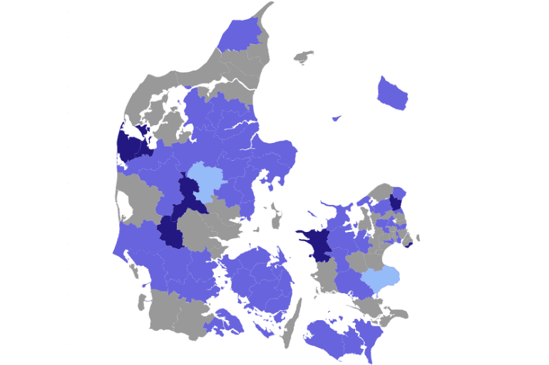 Ifølge et danmarkskort, som Kræftens Bekæmpelse senest har opdateret 16. december, har følgende kommuner tilsluttet sig partnerskabet røgfri arbejdstid: