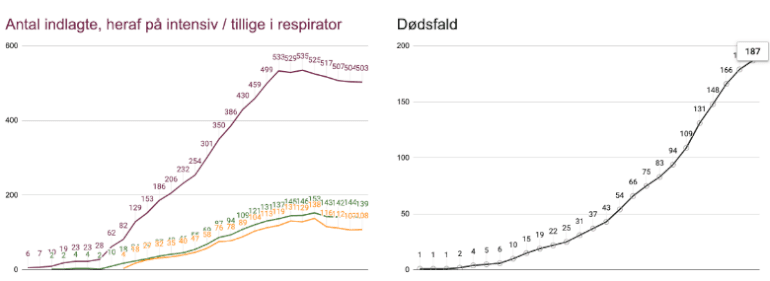 Antallet af afdøde med coronasmitte er vokset til 187, syv flere end det korrigerede antal dagen forinden. Alle tal ligger inden for mønstret for den seneste udvikling.