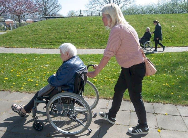 I vejledningen fra den 8. april fremgår det, at restriktionerne for besøg på plejehjem 'gælder både fællesarealer, udearealer og den del af boligen, som borgeren selv råder over'. Men det er forkert. Den 4. april har Styrelsen for Patientsikkerhed nemlig revideret loven, så pårørende må besøge deres kære på plejehjemmenes udendørsarealer, hvis byrådene finder det forsvarligt.