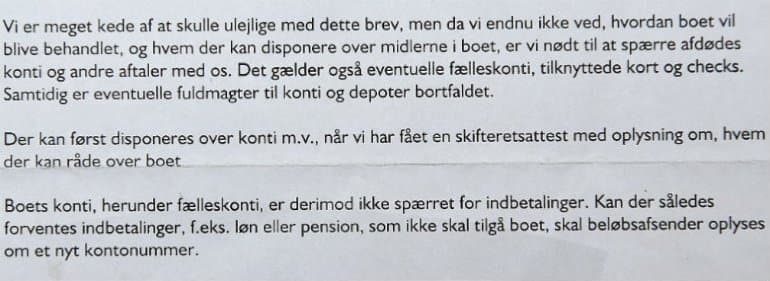 Bankkontoen blev spærret, alle forsikringer skulle ændres, passet blev annulleret, kørekortet blev annulleret og alt, der var tilmeldt betalingsservice skulle genoprettes.