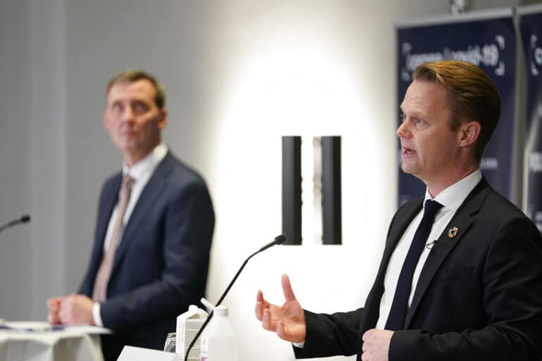 - Der er mulighed for bøder eller fængsel i op til to år. Man kan benytte sig af en kviktest, som er til stede i langt de fleste lufthavne, ligesom den er tilgængelig i Kastrup Lufthavn, siger transportminister Benny Engelbrecht (S) på pressemødet.