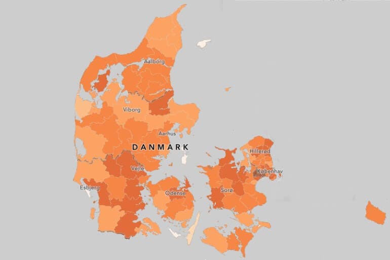 Blandt kommunerne ligger seks nu under bekymringsgrænsen med en incidens under 20. Det er de fem ø-kommuner Læsø, Fanø, Samsø, Ærø og Langeland samt Lemvig på fastlandet. I den anden ende af skalaen topper de fire københavnske omegnskommuner Ishøj, Høje-Taastrup, Vallensbæk og Brøndby med incidenser over 200.
